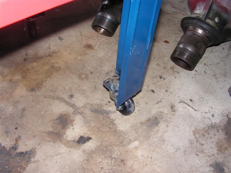 The legs of the washer were first drilled for two 1/4" machine screws to attach the casters. Then the caters were also tack welded to the coners to ensure that they didn't move.