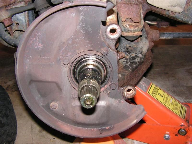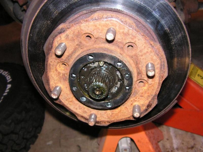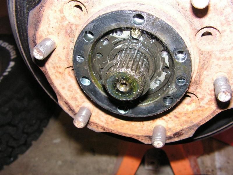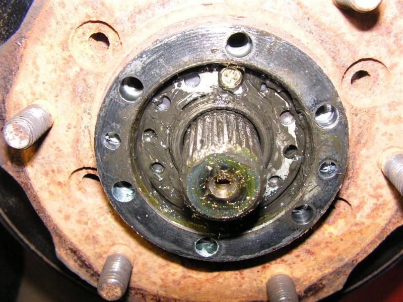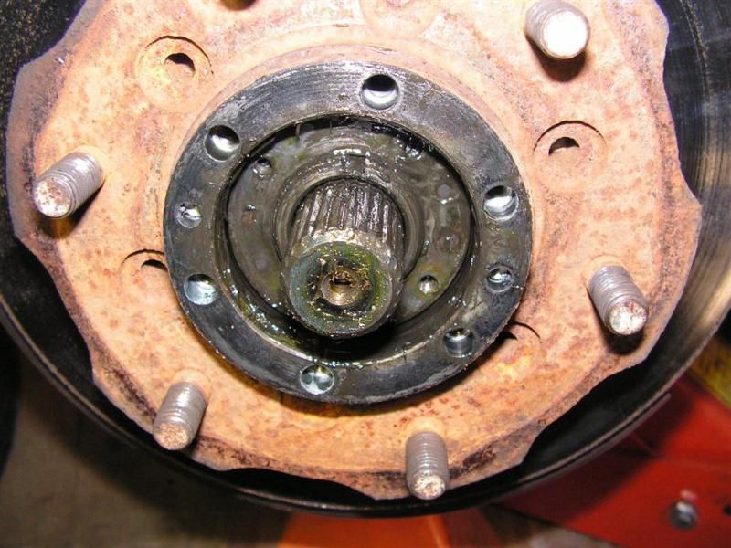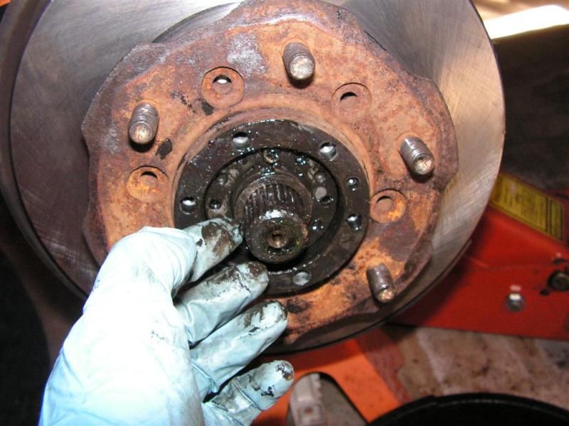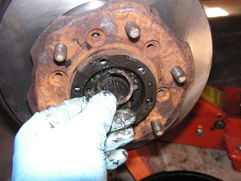 Once the calipers were off, the manual lockers were removed and the CV joint snap-ring was loosened.
