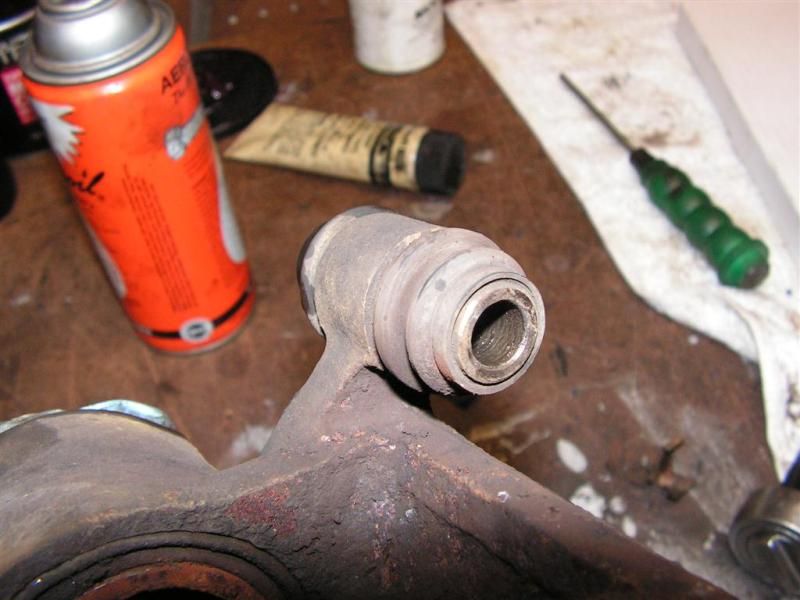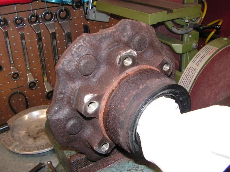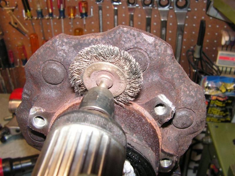 A die grinder with a wire brush cleaned the hub before it was slathered with nickel anti-seize compound.