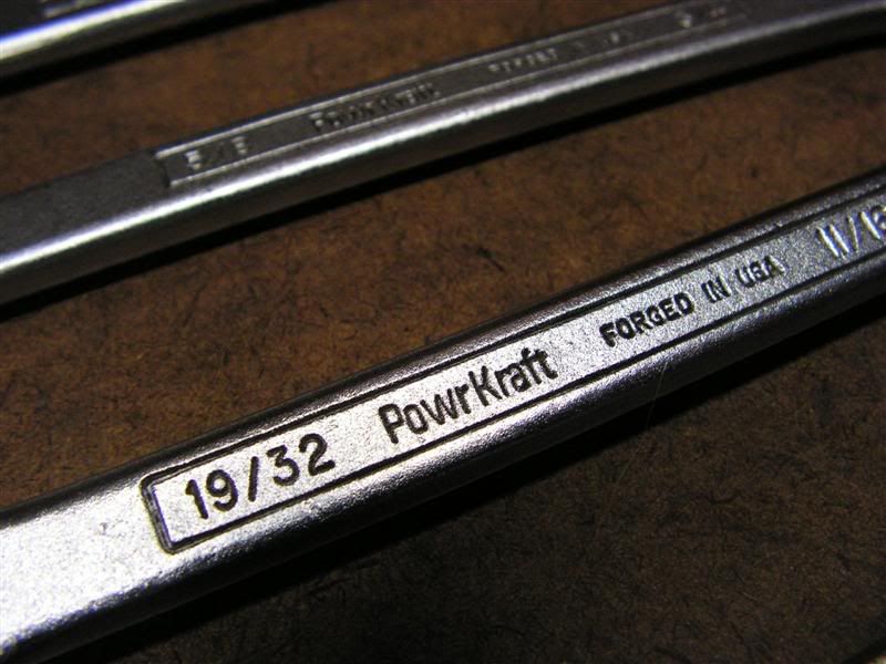 These are getting pretty rare; because since the early 1970's open ends became less and less popular. This is an early SAE Thorsen set (ca. 1975) and still includes a 19/32. The set is perfect and I still use it a lot. In the late 70's most of the larger PowrKraft open end sets were special order only from the Montgomery Ward tool catalog.