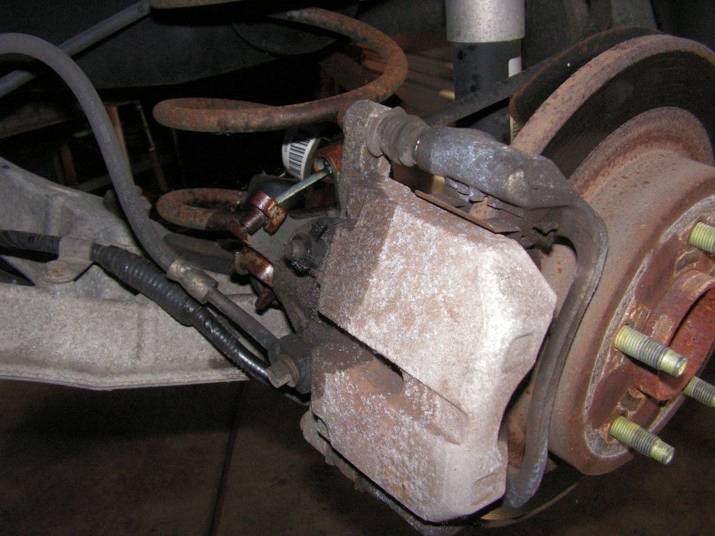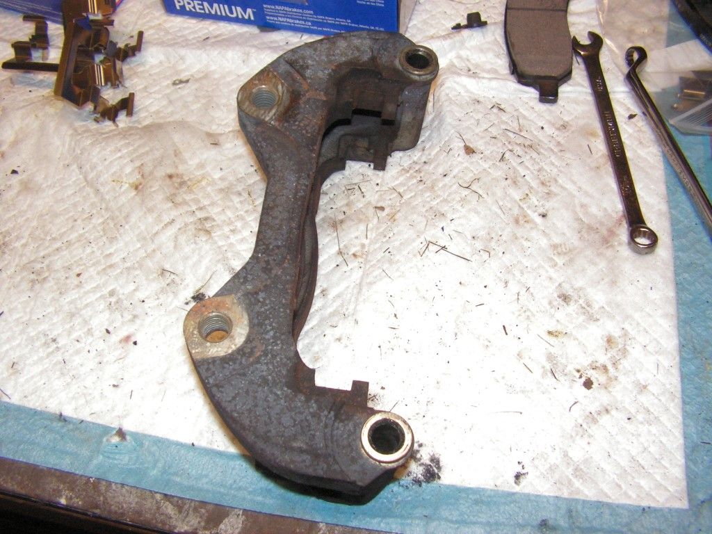 The fronts were a bit more difficult because both slide pins were sticky. I had to remove the entire brake caliper bracket -- and it was tight. The loctite that the factory uses is pretty strong. Had to use my 1/2" drive impact to get it lose.