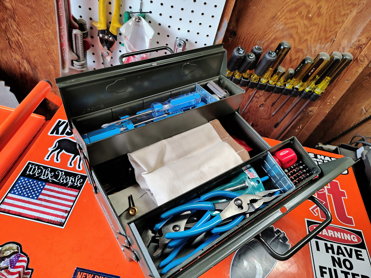The efficiency of a cantilever box is amazing, with a hip roof box twice this size I couldn't even fit all these tools in because that tray sits down at takes up so much real estate.