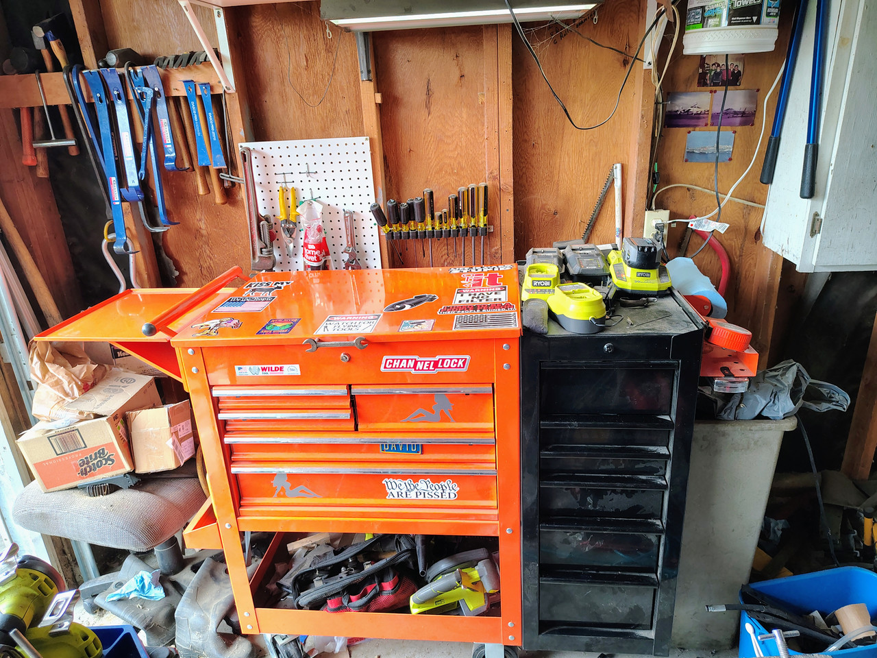 My two miss matched stack ups of craftsman boxes(all bought on sale as I found myself needing more space). One friction slide and the newer one with ball bearing slides and latches.