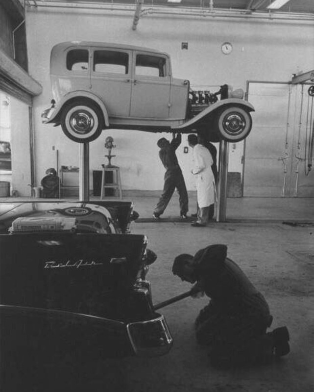LOVE the old two-post hydraulic lifts. What a great idea that was at the time.