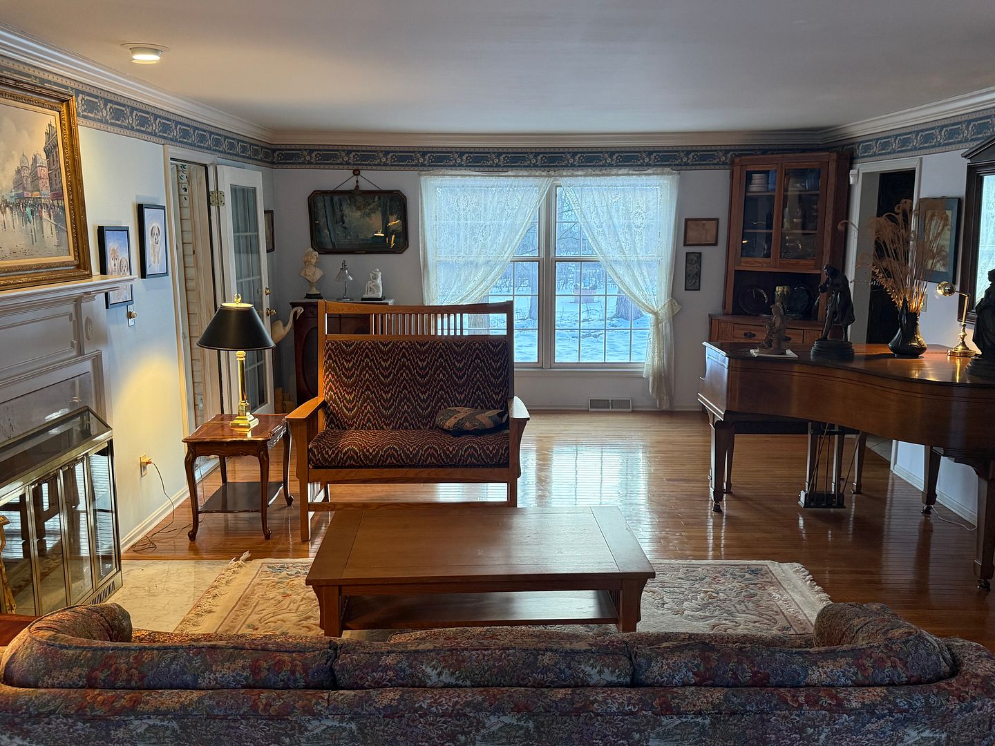 My 24' by 30' living room with solid 3/4" Bruce urethane coated oak flooring 25 years ago.