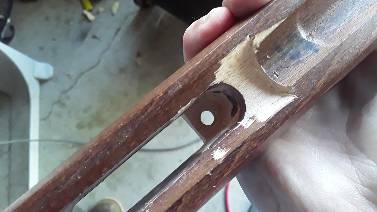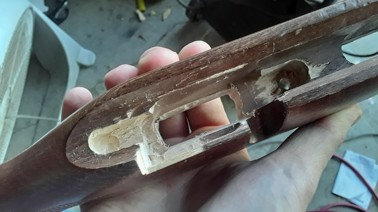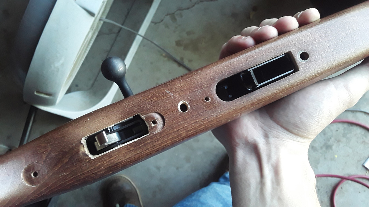 Inletting at the back here for the safety was scary as hell, one slip and I'd be blowing out a huge chunk of wood that I could never reattach properly.