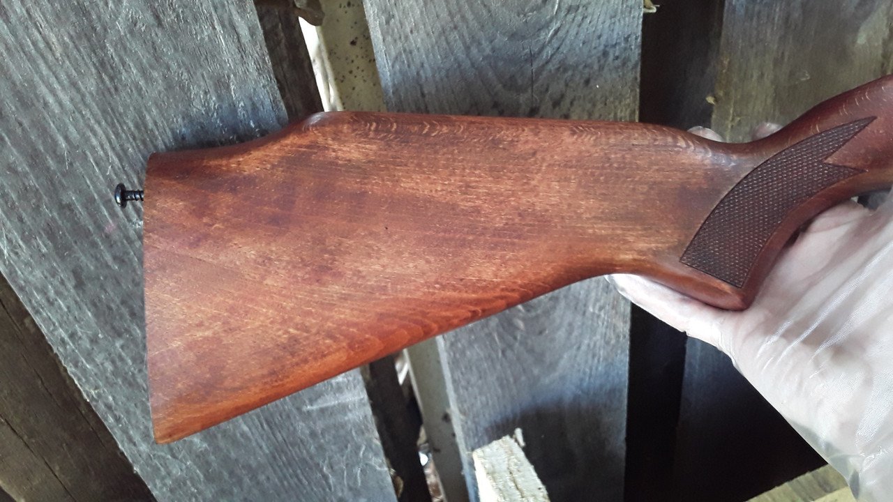 I ended up making the stock look old-ish which was not my intention,  but I think it'll probably look alright with enough light coats of watco rubbed in.