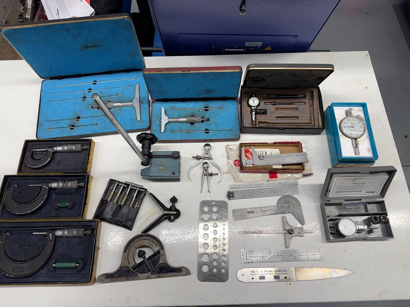 The Mitutoyo Dial Indicator alone was worth that. And the rest came along for the ride.. Most are made in  the USA. Maybe not major top quality; but respectable.. Gem indicator was made right here in Cleveland Ohio. The One, Two, and Three inch micrometers are Central Tool, made in Rhode Island. A few are Starrett Tool. The drill gage is General Hardware made in NY, etc...The large dial indicator is an Enco made in Japan. The telescoping gage set are unbranded,, most likely Chinese. Height gage is also Mitutoyo..