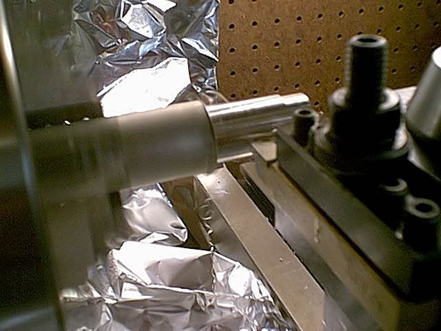 The first pic shows the machining process for the mandrel (just some scrap aluminum rod).