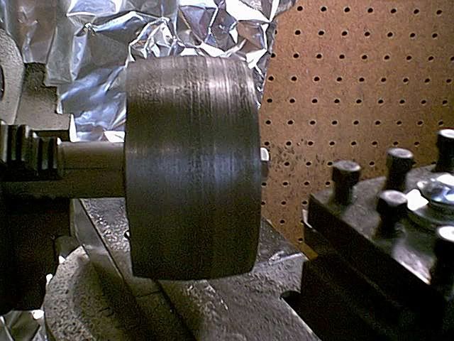 I made these for an e-wheel project. They are made from 3" sintered metal casters that were purchased from Northern Tool for $5.00. They make excellent anvils. I'm not a big fan of "flat spotting" the radius because I believe a full radius provides better tracking and crown development (to each his own). A flat can certainly be machined very quickly --