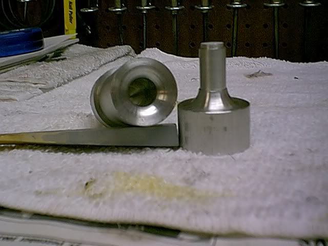 Here are my finished bits (one for the "receiving" die flange and the other for the "pressing" die flange) the radius is the same. The relief angle on HSS bits is not that critical if you're machining aluminum. Another reason to make dimple dies out of aluminum instead of steel.
