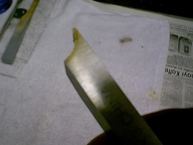 Next take two blank HSS lathe bits and grind the internal and external profiles (same radius on both) for the flages that will impart the shape (dimple) to the sheet metal stock. This is difficult at first, but can be readily mastered in a short time. The important thing in grinding HSS is not to let the bit overheat and to grind only a few seconds at a time. Keep a cup of cold water handy to keep the bit from overheating.