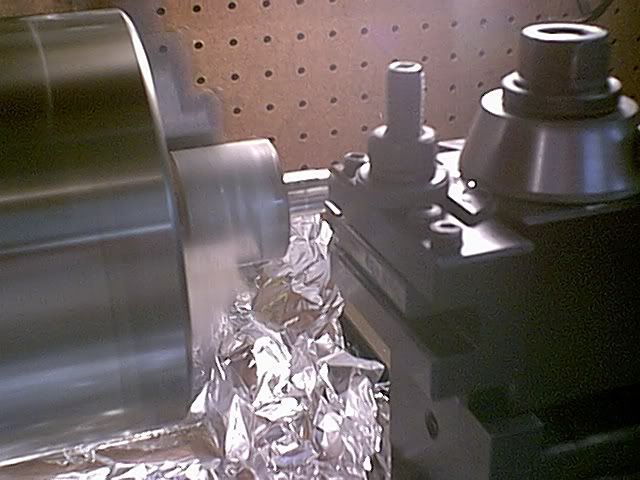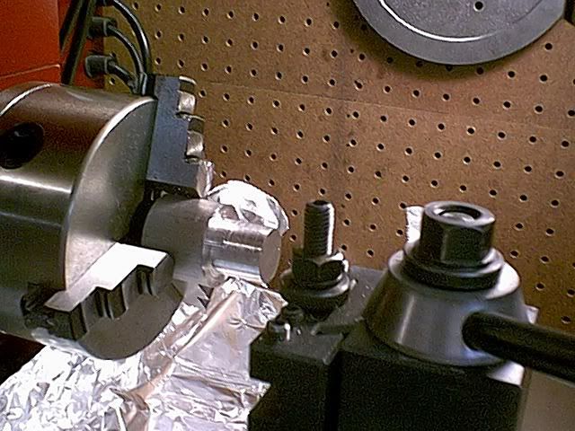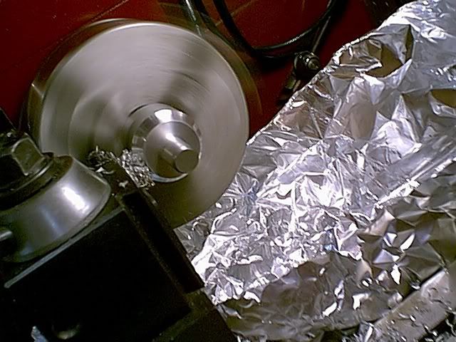 Next use the other slug to machine the pressing die (the shaft will be exactly 1/2") -- much more precison is required at this stage.
